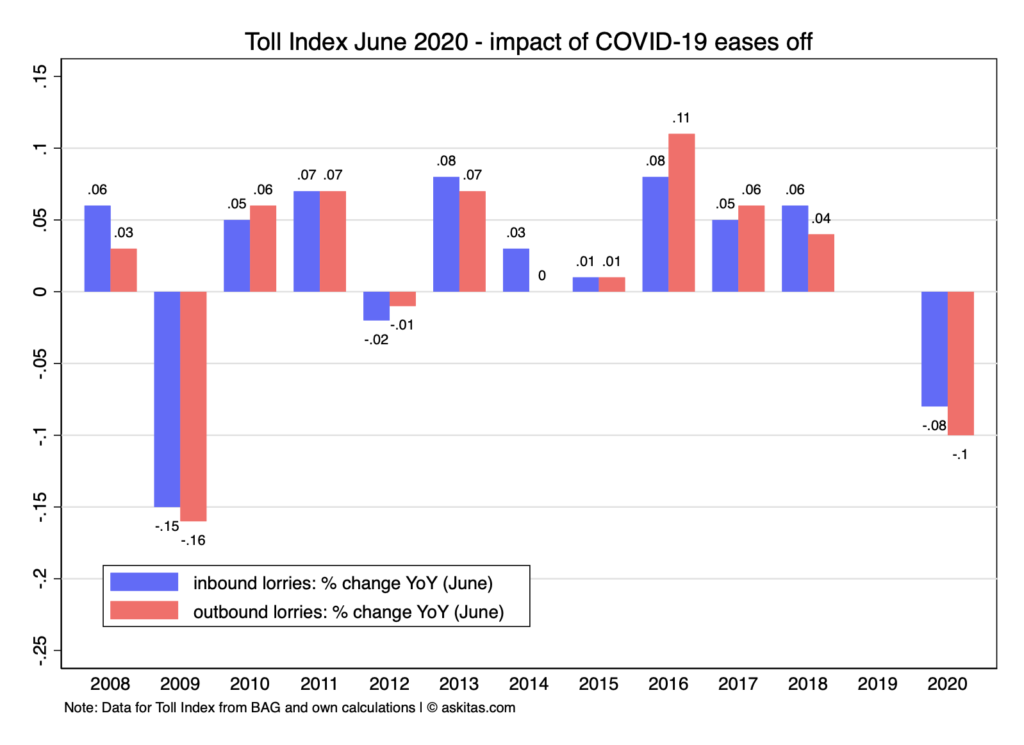 Toll Index August 2020 – COVID-19 in lorries’ rear-view mirror